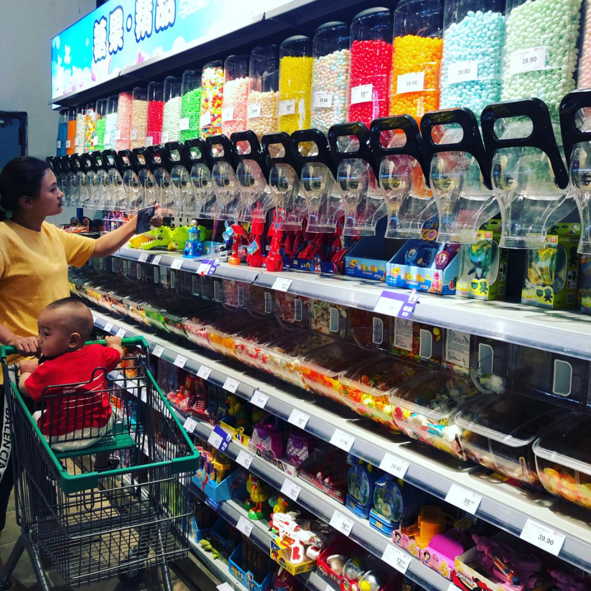 A Zerowaste Candy Shopping Way en un supermercado en la ciudad de Jiujiang